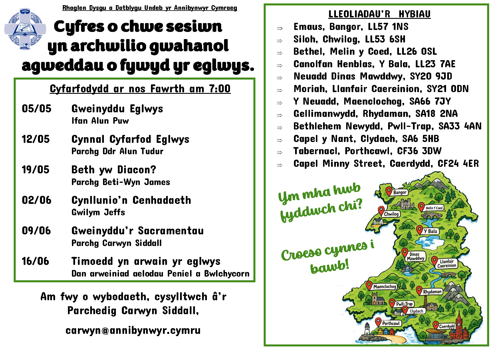 Bydd chwe sesiwn newydd yn archwilio agweddau o fywyd yr eglwys yn cael eu cynnal mewn hwb lleol i chi yn fuan.