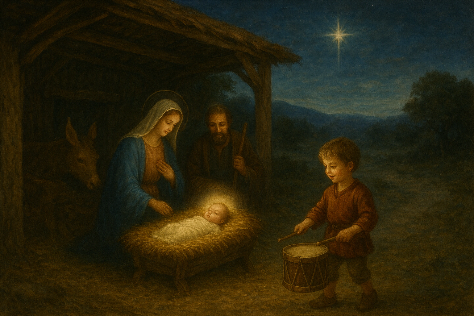 There is an important message in this picture. Shouldn't the little Jesus be protected from such noise? Shouldn't God and the Father of our Lord Jesus put a stop to the sound of the little drummer!? No. Why? This is the incarnation: God living in the midst of humanity.